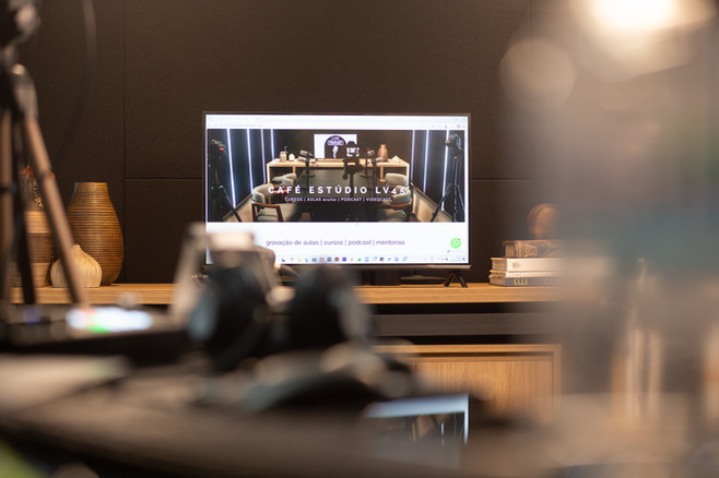 No Café Estúdio LV45 te ajudamos a destravar, organizar, gravar e dar vitrine ao eu curso em vídeo – ou seu podcast – com direção, acolhimento e qualidade de estúdio, para que você se posicione no digital sem se sentir sozinha no processo.